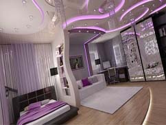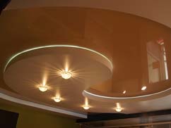 Многоуровневый означает, что потолок будет представлять собой сочетание нескольких полотен. На самом деле таким образом можно воплотить практически любую фантазию, ведь доступно большое количество разных конструкций, форм, расцветок и т.д.